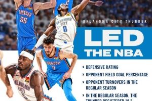 雷霆官推回顾球队上季:防守效率&限制对手命中率&对手失误均第一