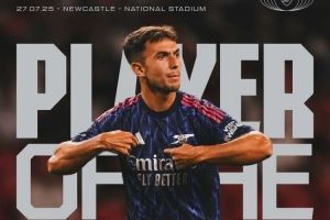 6500万欧强援!祖比门迪当选对阵纽卡一役阿森纳队内最佳球员