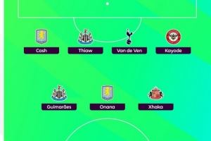 后卫:卡什(阿斯顿维拉)、佳夫(纽卡斯尔)、范德芬(热刺)、迈克尔-卡约德(布伦特福德)