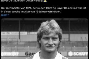 在官方公告中,勒沃库森声明:“俱乐部对迪特·赫尔佐格的逝世表示哀悼! 他曾效力于勒沃库森7年,这位1974年世界杯冠军队成员于本周去世,享年79岁。”